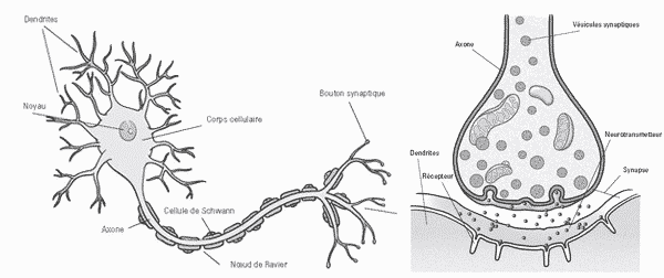 Le système nerveux est formé d’une centaine de milliards de cellules : ce sont les neurones, cellules spécialisées qui constituent les plus petits composants du système nerveux central. Le rôle fondamental d’un neurone est de recevoir, propager et transmettre le signal nerveux. – Chaque neurone est constitué de trois entités :